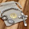 Rosenkranz Schlüsselanhänger Benediktus mit weißen Kreuzperlen